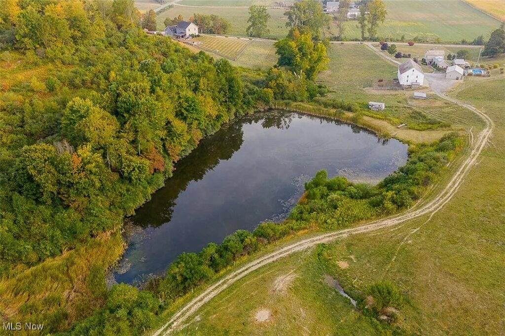 The land itself is well-suited for agricultural and recreational use, offering fenced pastures, hay fields, paddocks, and a 1.5-acre pond. An elevated ridge provides panoramic views and presents an excellent potential building site. This diverse acreage supports livestock operations, outdoor recreation, or a full-scale homestead lifestyle.