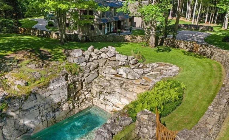 Tucked away in the verdant hills of the Berkshires, this extraordinary 60-acre estate known as The Quarry represents a rare confluence of natural splendor, historical depth, and architectural refinement. Singular in every sense of the word, the property’s defining feature—a breathtaking stone quarry pool carved into the earth itself—sets the tone for what is a truly exceptional retreat. This is not merely a home; it is a fully immersive experience, a private sanctuary where nature, luxury, and legacy come together in a dramatic yet harmonious balance.